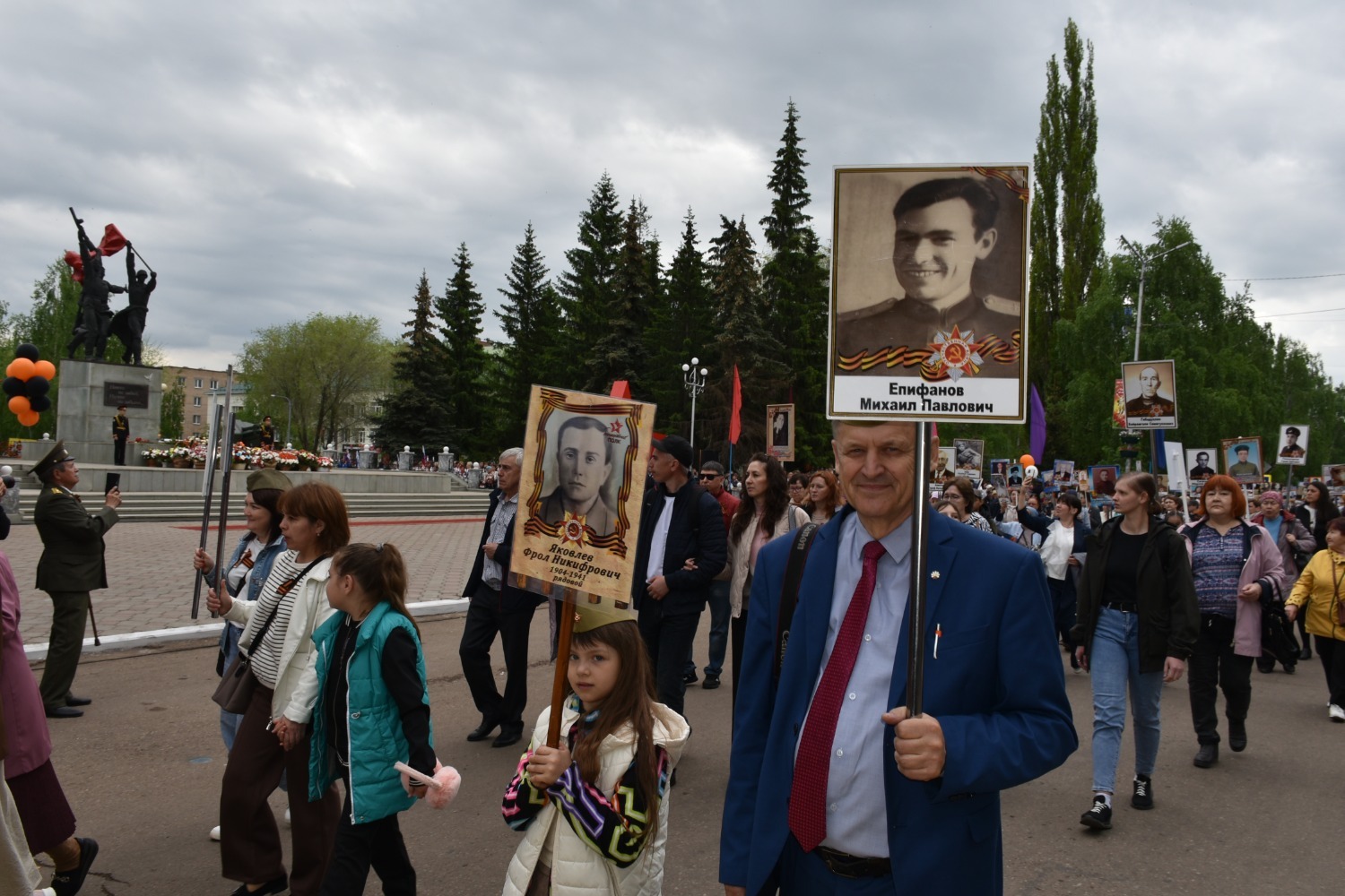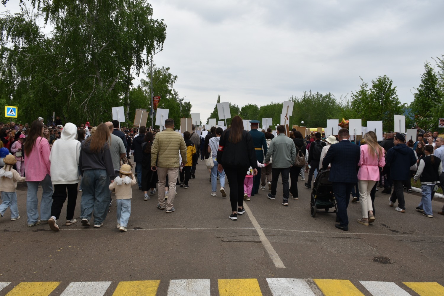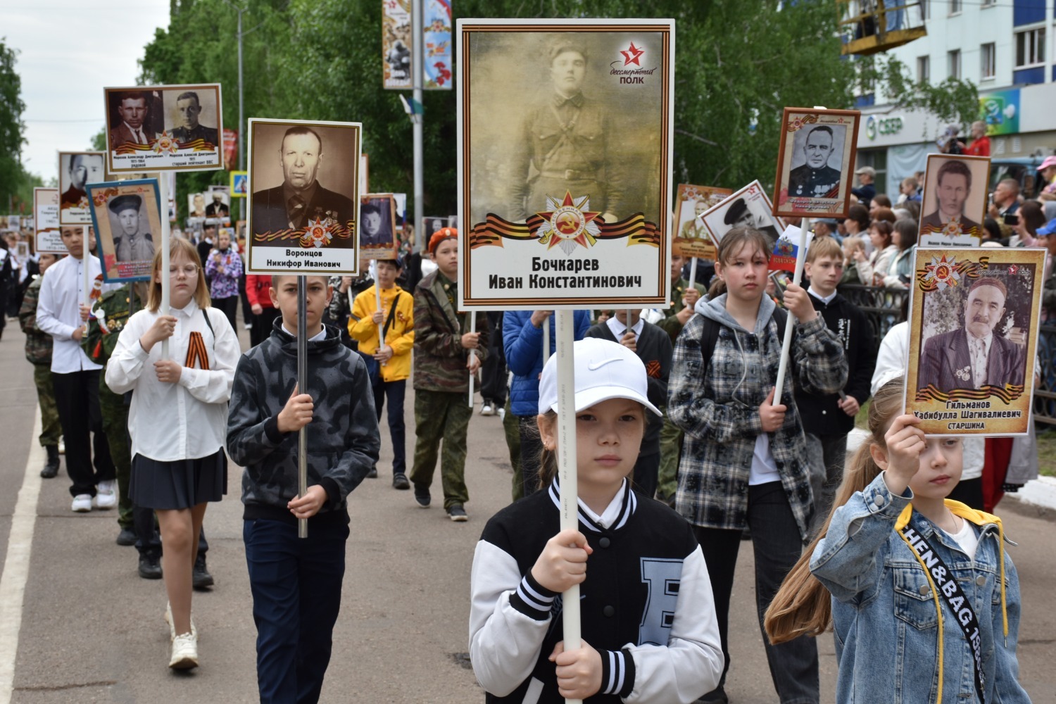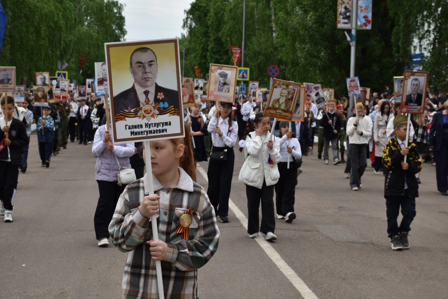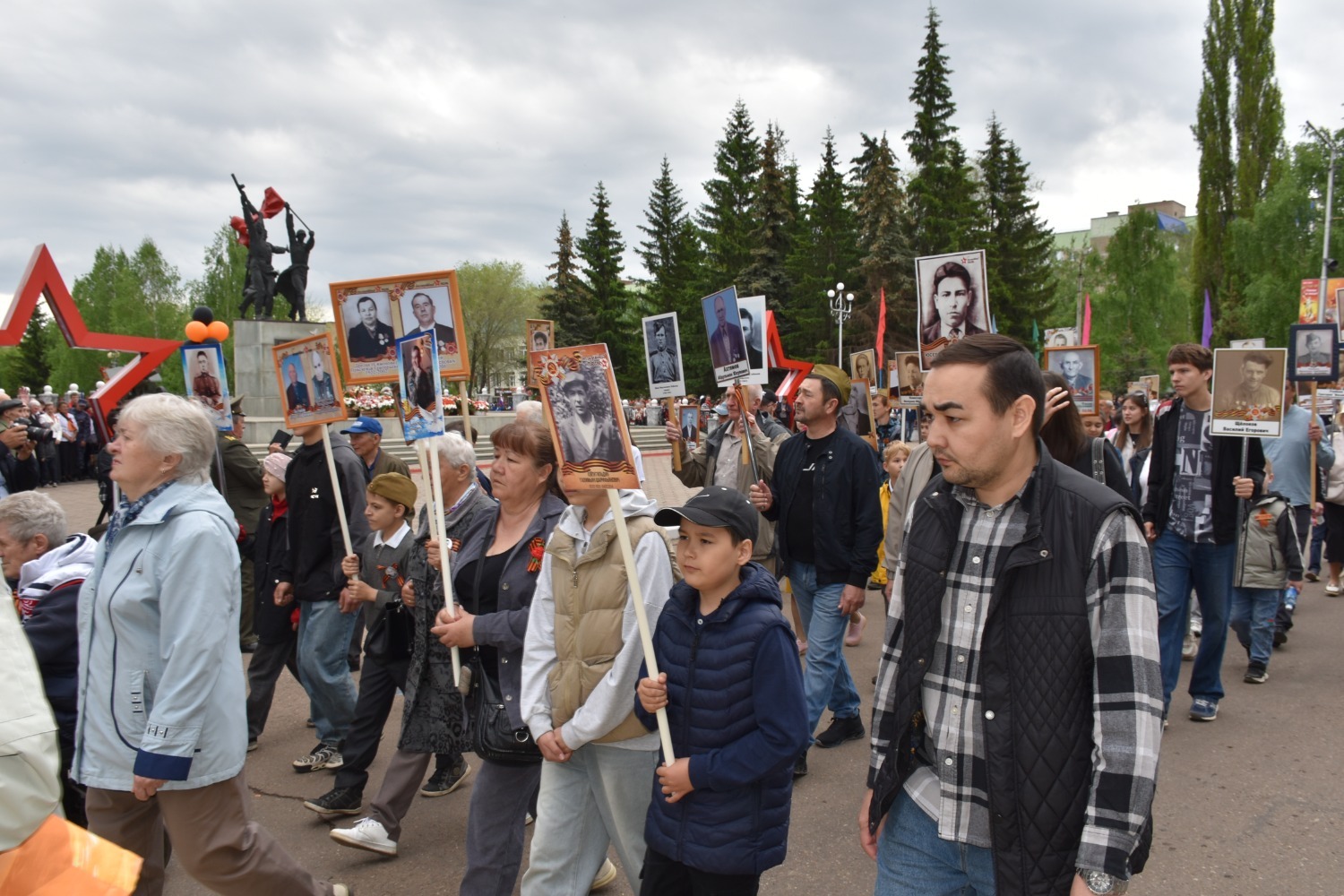 Всегда особые чувства вызывает марш «Бессмертного полка». Вот и в этот раз тысячи людей от мала до велика прошли с портретами своих родных, сражавшихся за Родину. После перерыва в несколько лет горожане и гости Мелеуза в едином порыве прошли со своими героями, включая изображения бойцов СВО, по центральной улице города.
