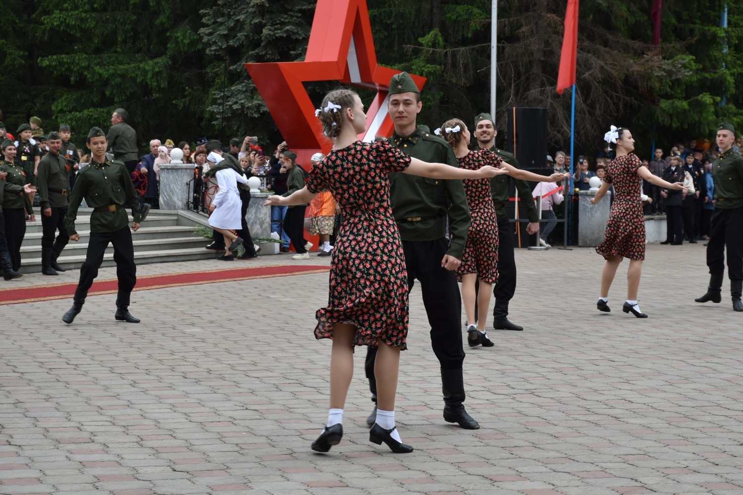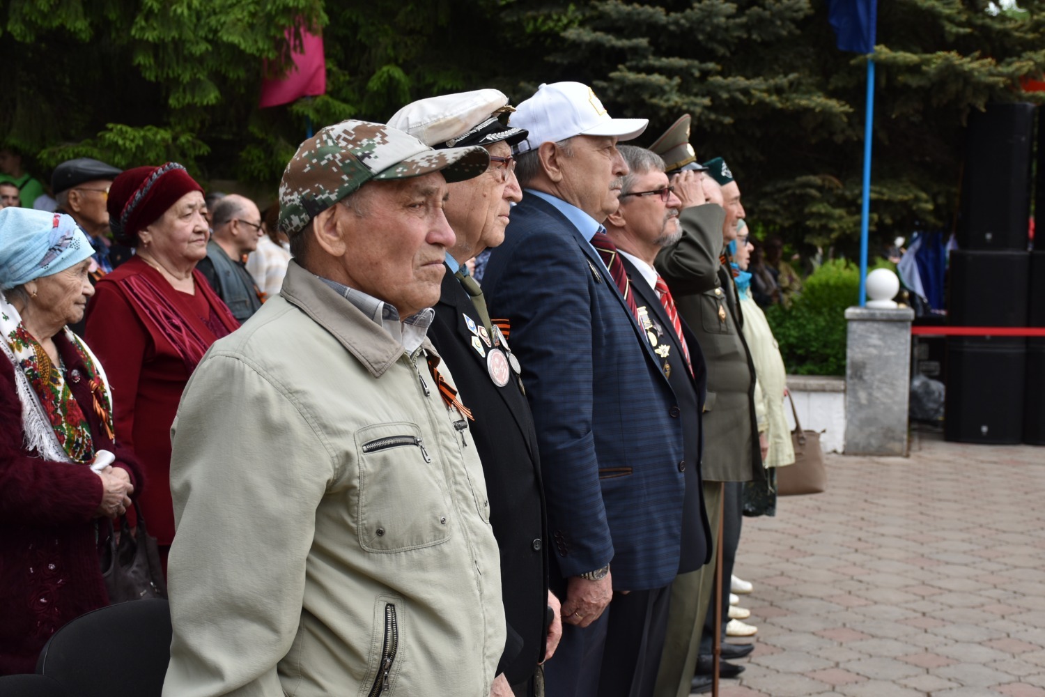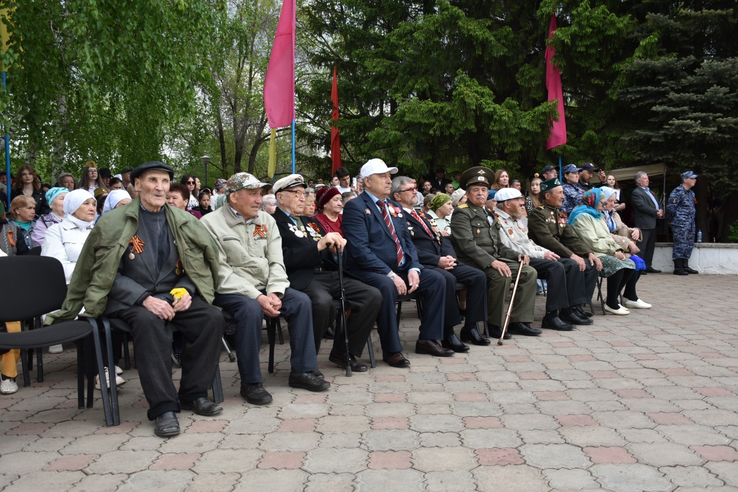 Мелеузовцев поздравили с юбилеем Победы военный комиссар г. Мелеуза, Мелеузовского и Фёдоровского районов подполковник Ринат Гибадуллин, начальник департамента секретариата руководителя администрации Президента РФ полковник юстиции Рафаэль Хакимов, первый заместитель председателя Государственного комитета Республики Башкортостан по чрезвычайным ситуациям полковник внутренней службы Виталий Барзайкин и депутат Государственного Собрания - Курултая РБ Рамазан Рамазанов. От имени подрастающего поколения со словами благодарности ветеранам Великой Отечественной войны и обещанием быть достойным их подвигу выступил ученик восьмого «В» класса школы №4, юнармеец Алексей Ежов.