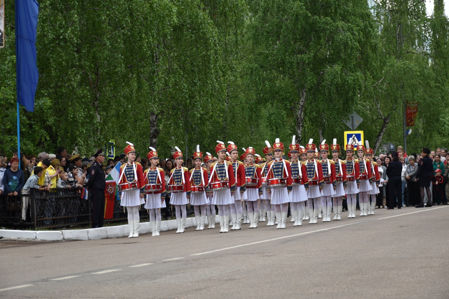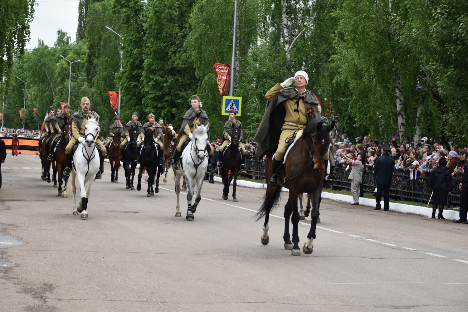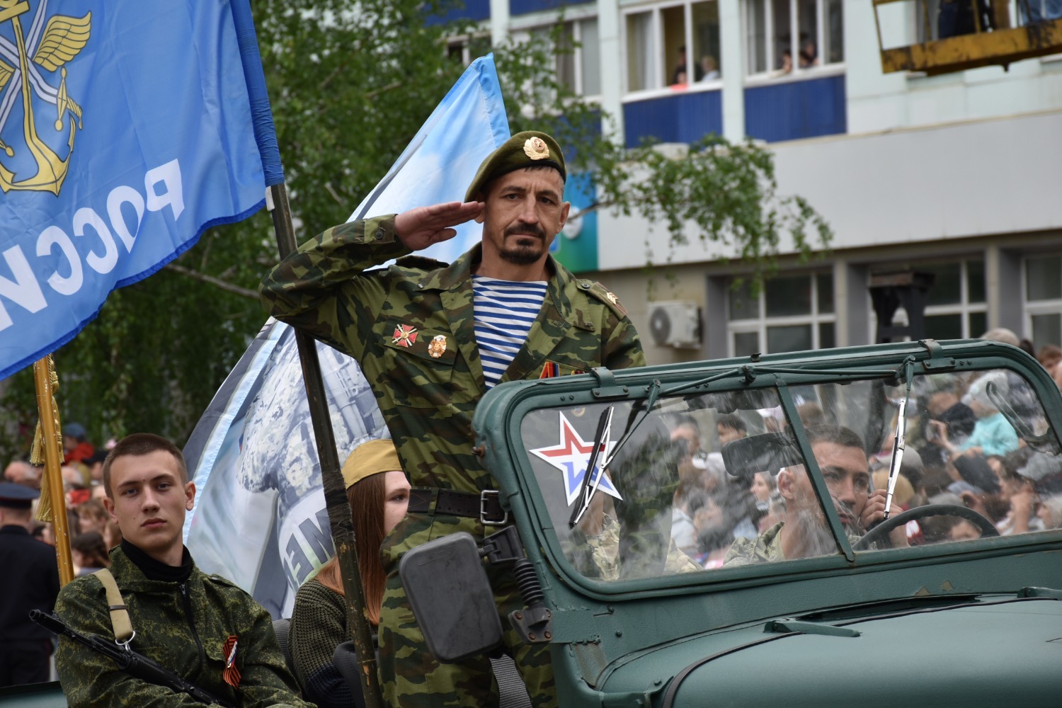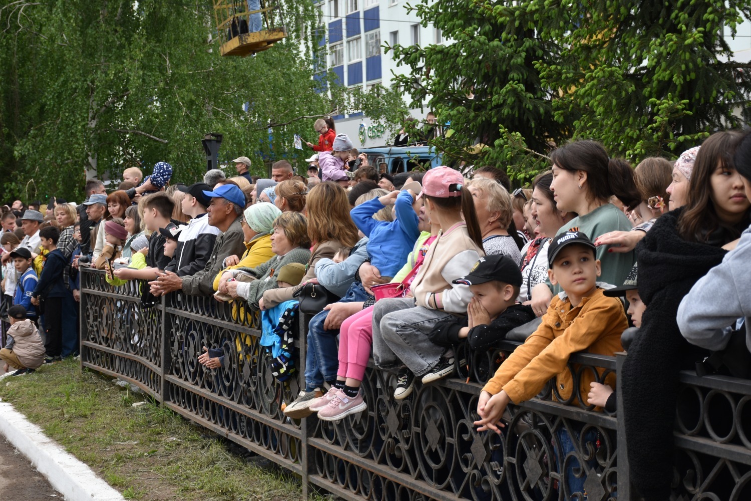 Праздник продолжился парадом представителей силовых структур, ветеранских и волонтёрских организаций. В торжественном прохождении традиционно принимают участие юнармейцы, шаймуратовцы, кадеты. Колонной прошли конники, ретромобили, боевые машины.