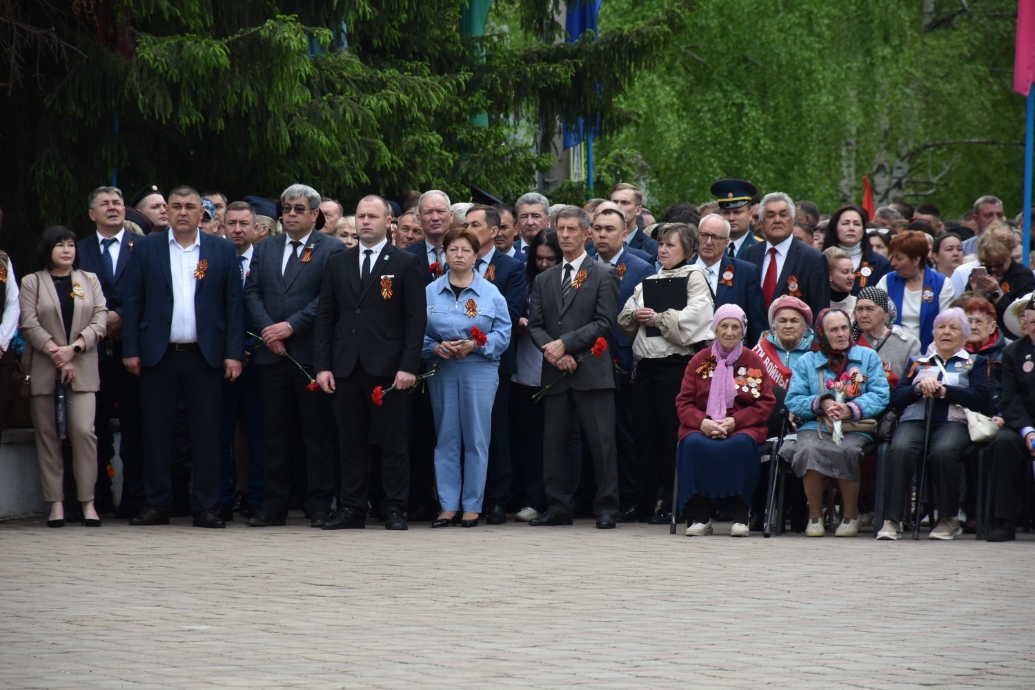 К Вечному огню с утра начали подходить ветераны Великой Отечественной войны, труженики тыла, вдовы фронтовиков, ветераны труда, участники специальной военной операции и локальных вооружённых конфликтов, жители, гости города и района всех возрастов. На почётных трибунах представители поколения победителей вели неспешный разговор о пережитом, о земляках, сложивших головы на полях сражений, о послевоенном восстановлении народного хозяйства, о вызовах, с которыми столкнулась в последние три года наша страна в ходе проведения СВО. Всё меньше среди нас ветеранов. Вместе с лицами, приравненными к данной категории, их насчитывается в городе и районе всего пять человек.