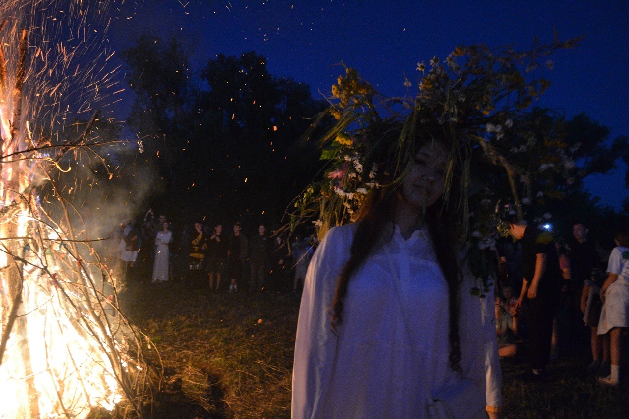 Одним из самых красивых и трогательных моментов вечера стало пускание венков по воде - девушки, по древней традиции, плели венки и отпускали их в реку, веря, что по направлению течения можно узнать свою судьбу.