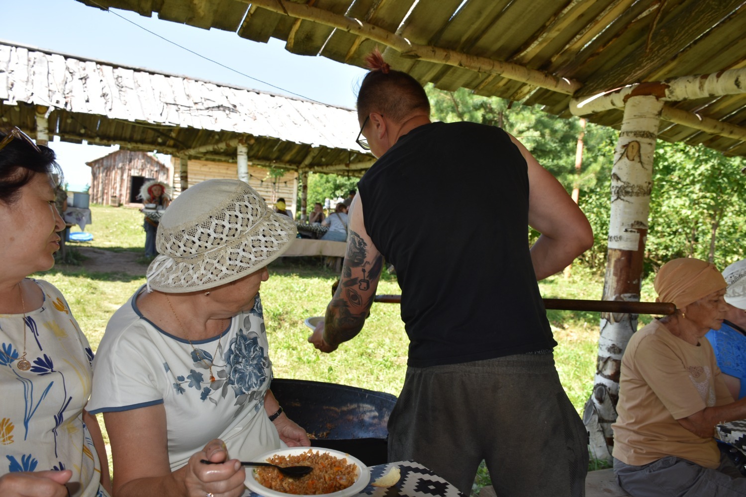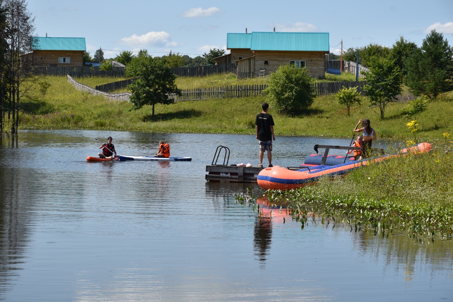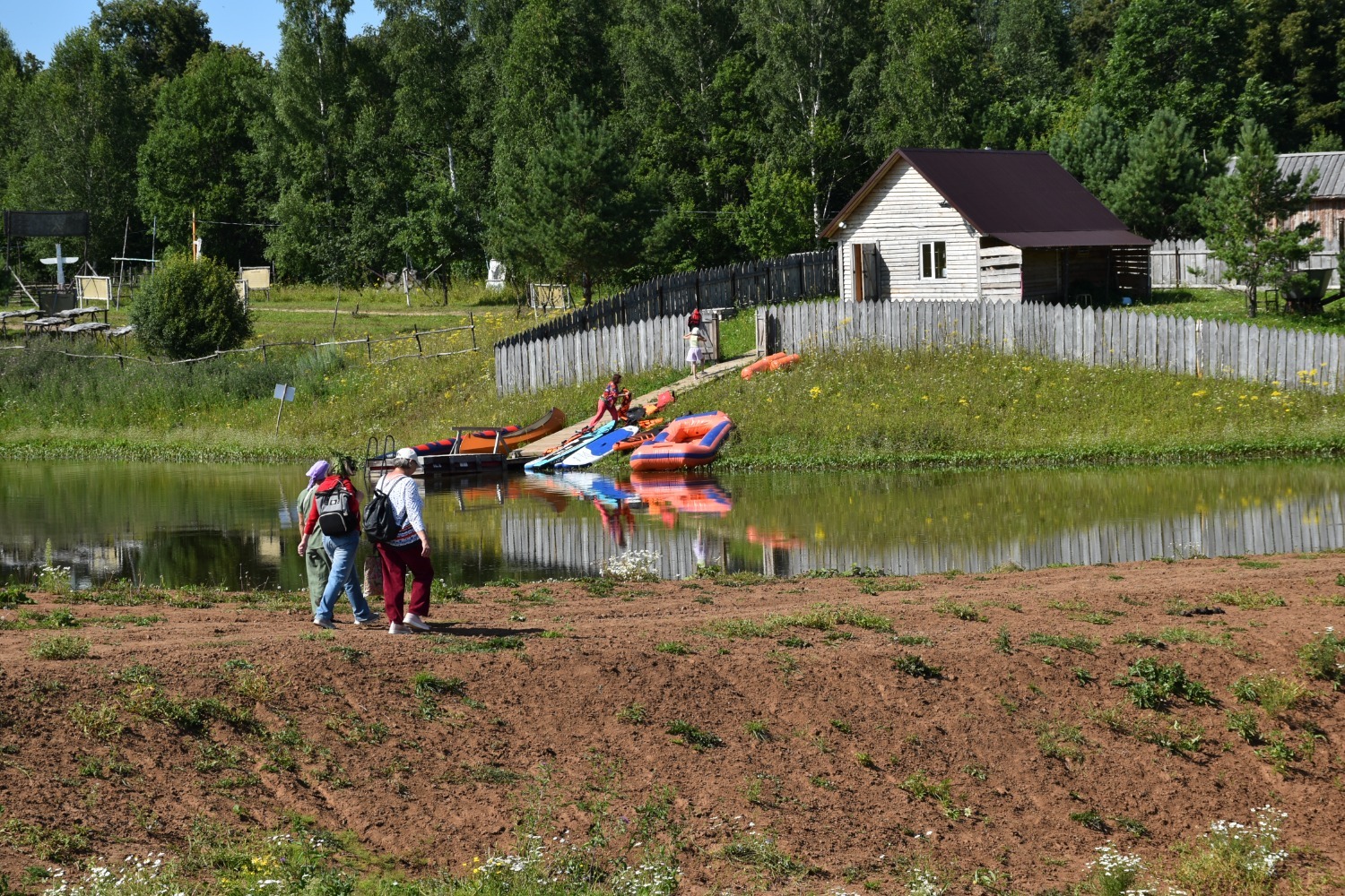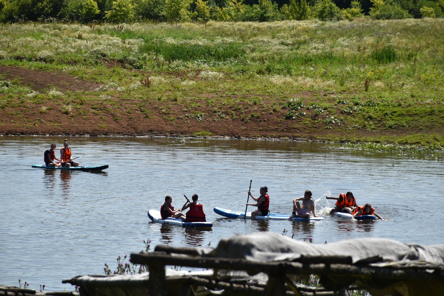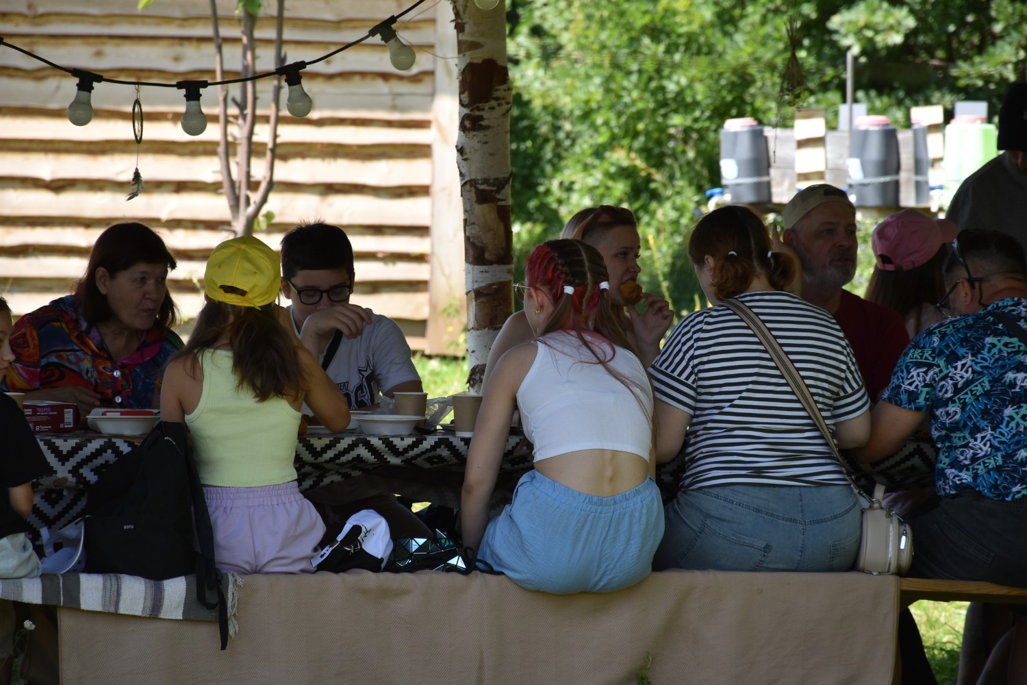 Как говорится, война войной, а обед по расписанию! Обедали под навесом за большим столом. Блюда были вкусными и сытными. Особенно всем понравился рассыпчатый плов, приготовленный в огромном казане на дровах! За соседним столом кушали воспитанники местного детского лагеря, которые ночуют в настоящих индейских домах-вигвамах. Подкрепившись, дети побежали на ближайший пруд, где у причала их ждали каноэ, катамараны, надувные лодки и сапборд (доска для плавания с веслом, авт.). Кто не захотел плавать и купаться, мирно расположились в подвесных гамаках.