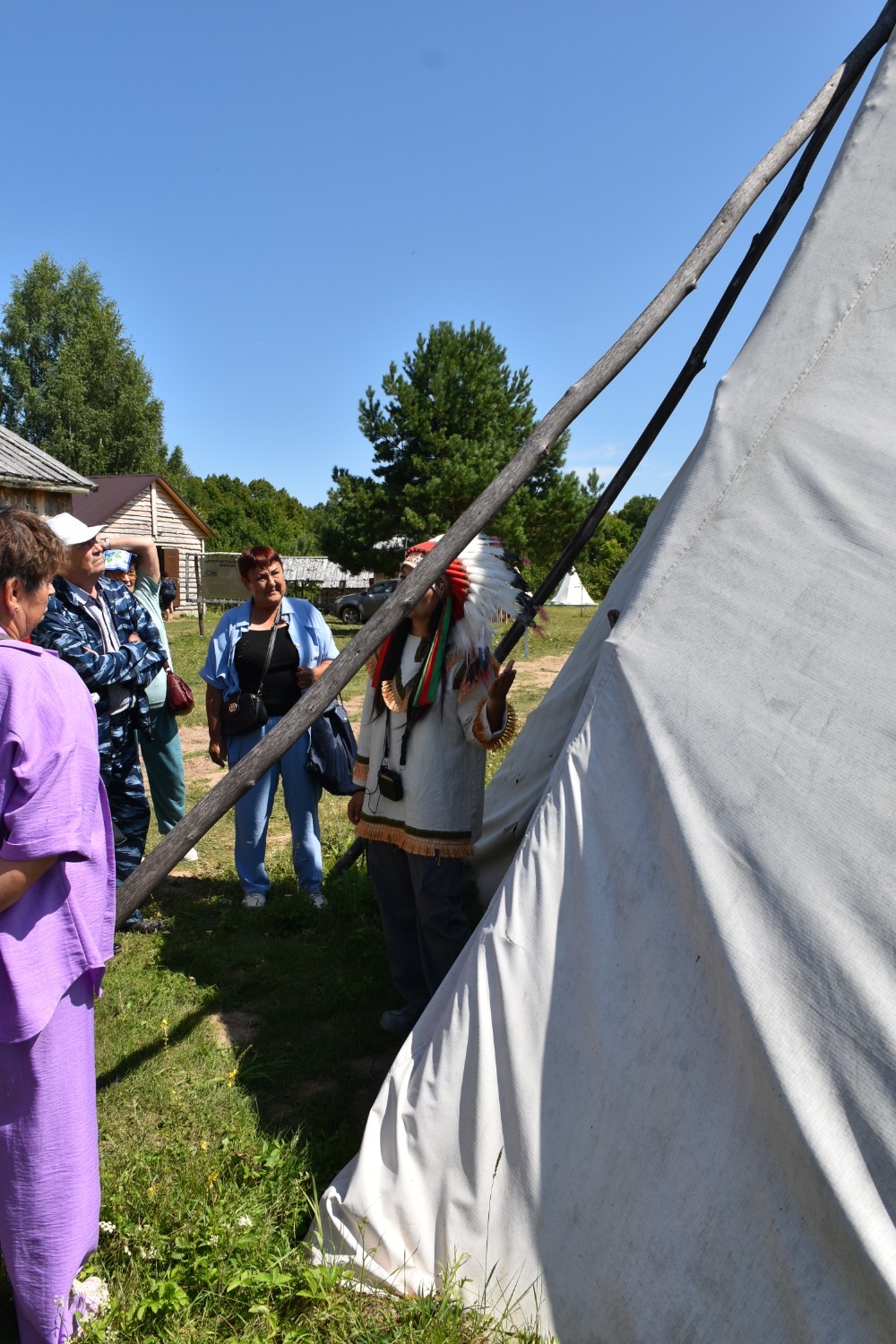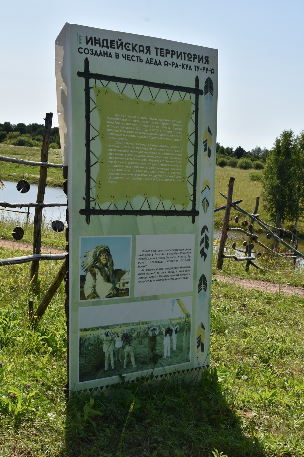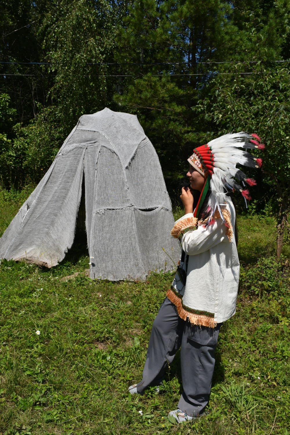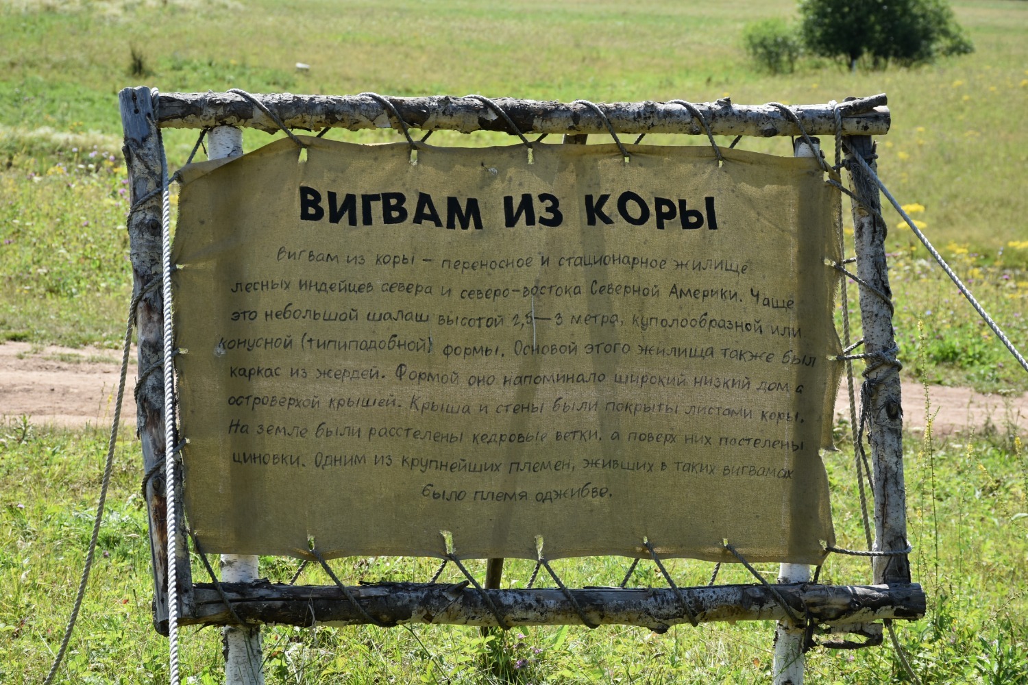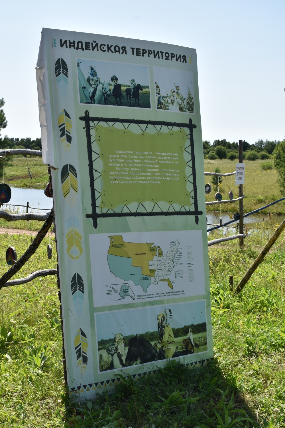 Вот мы подходим к воротам с вывеской, вновь напоминающей нам об участии в ковбойском вестерне. По-английски было написано «Indian country» («Индиэн кантри», что значит страна индейцев, - авт.), а ниже написано - «Индейская территория». Наша «индианка» подробно рассказывала о каждом экспонате музея под открытым небом «Индиэн кантри». Чем отличается вигвам от типи? На сколько перьев у индейского разведчика больше, чем у охотника-индейца? Об этом и многом другом мы узнали в ходе незабываемой экскурсии.