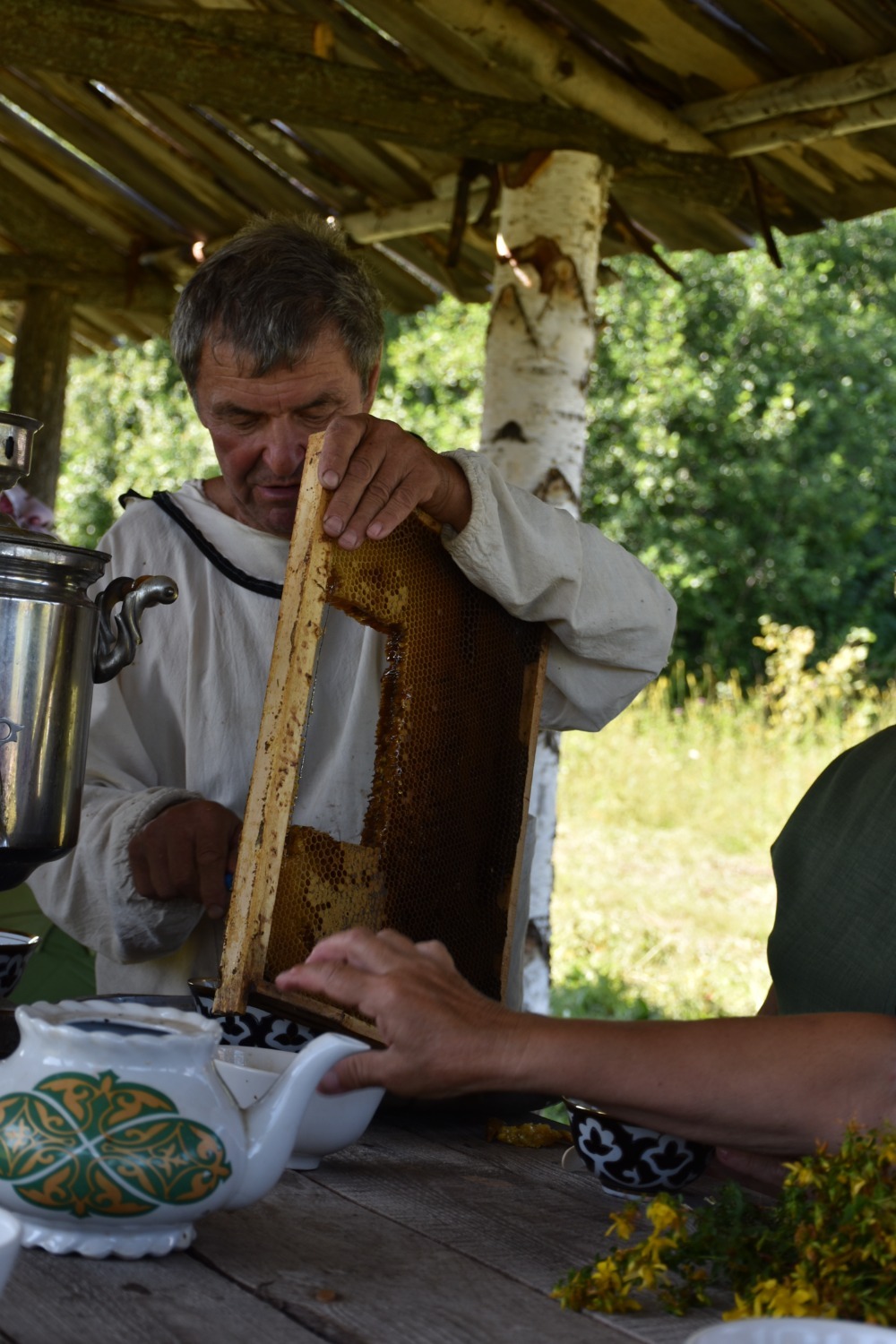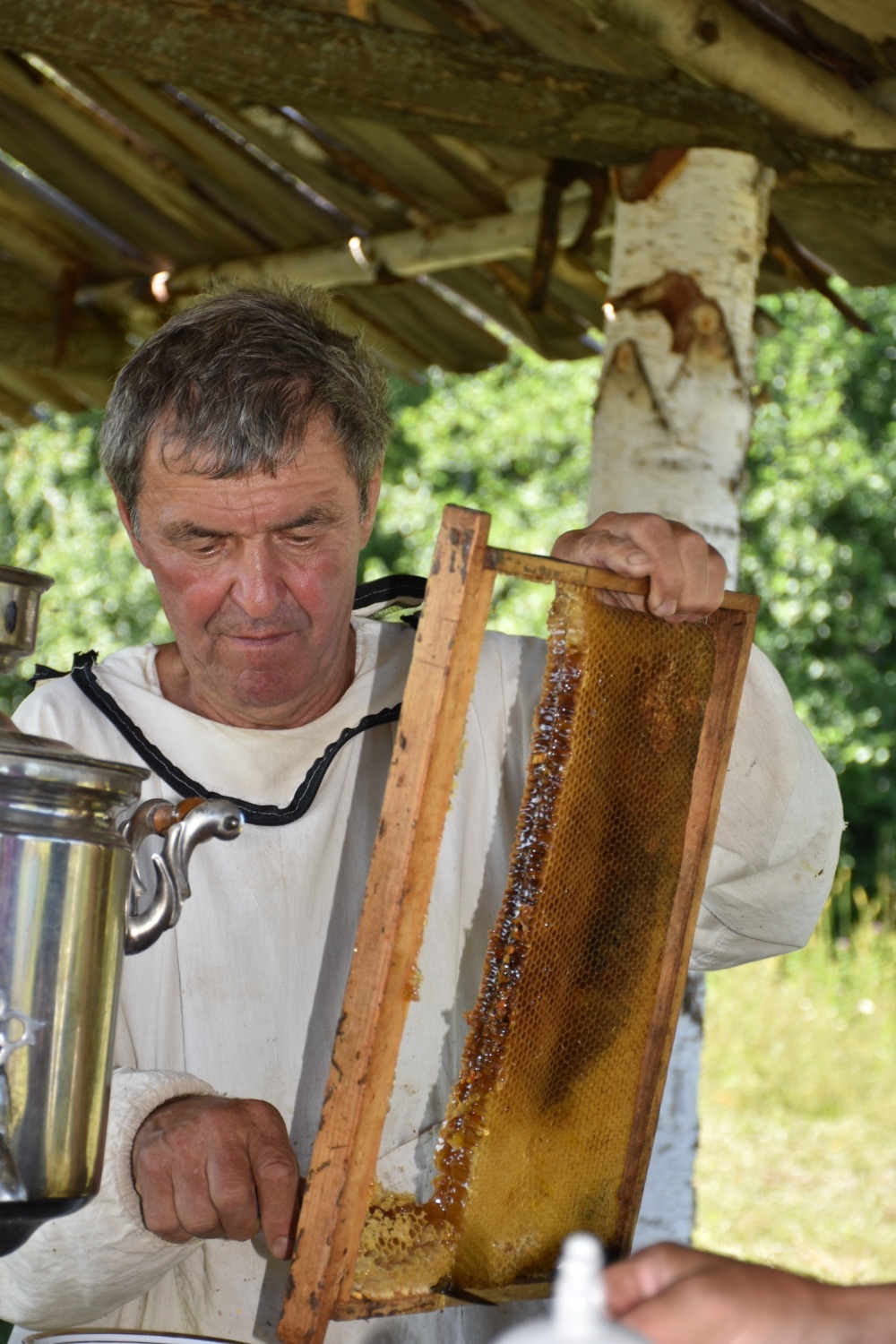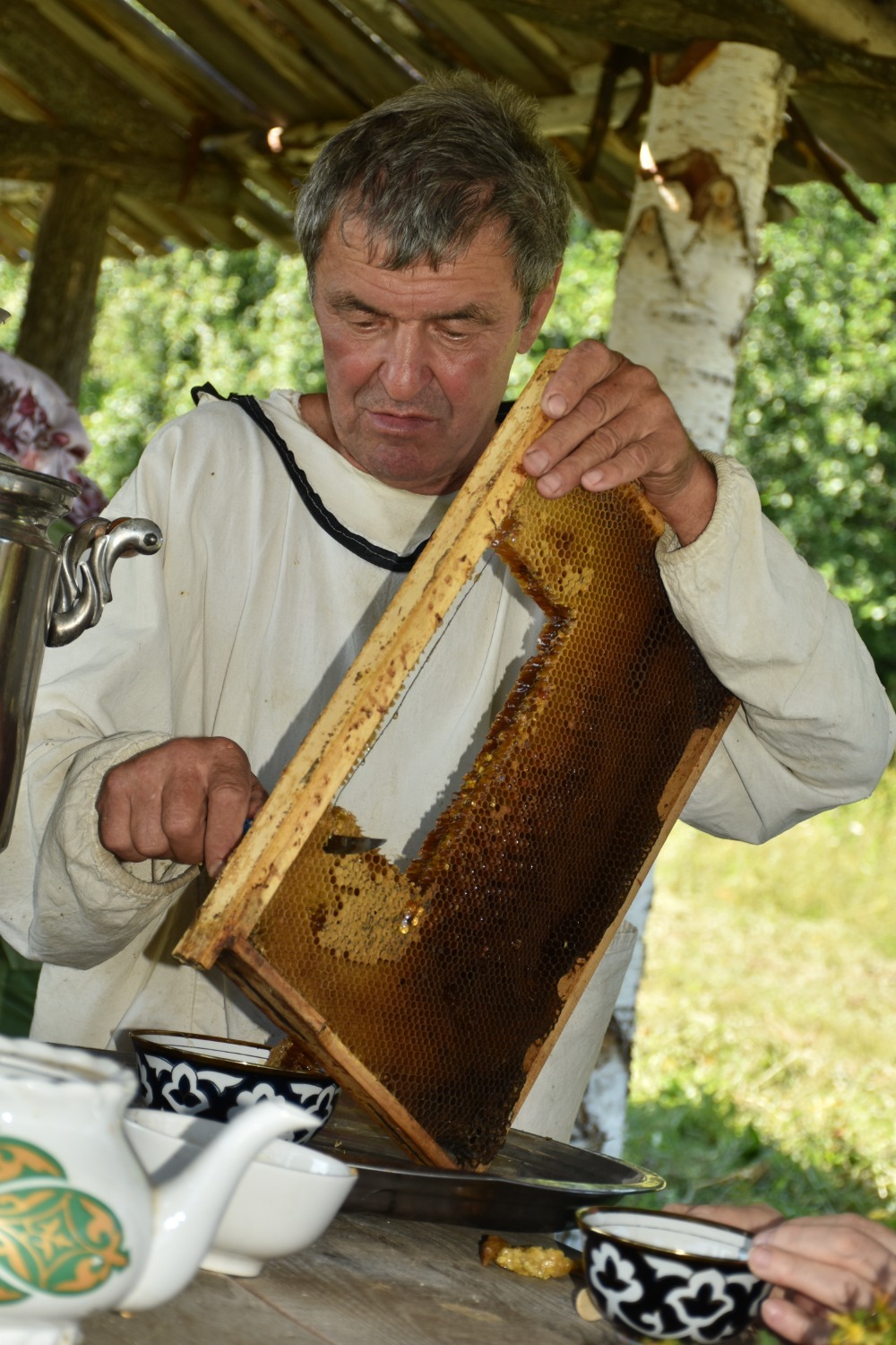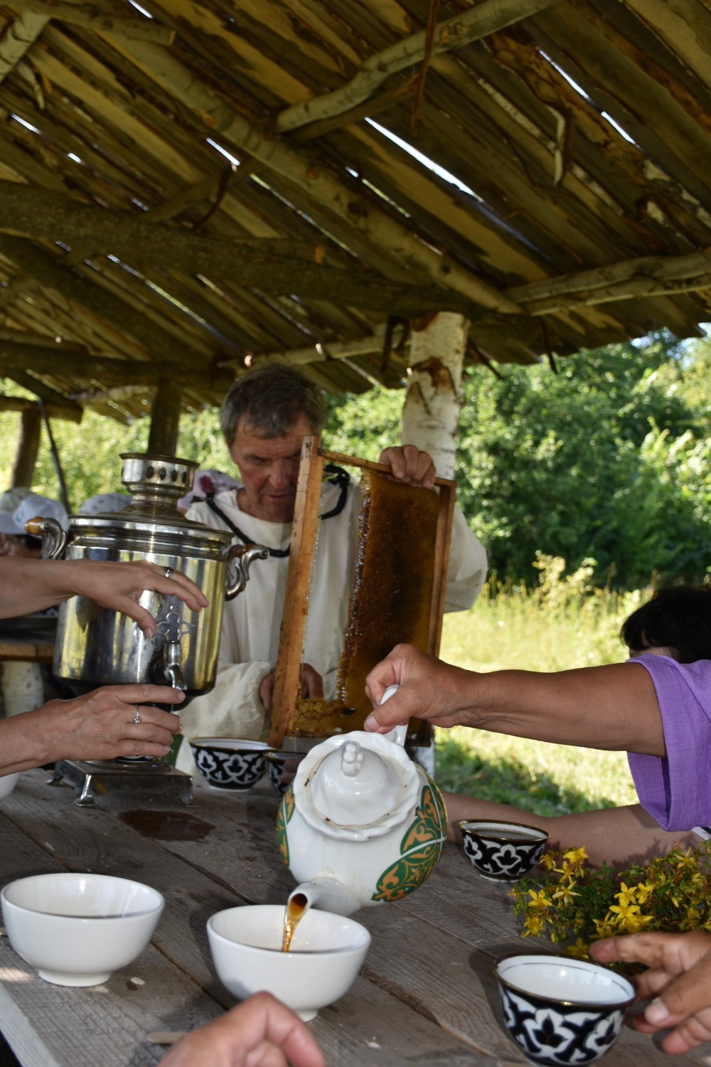 Все хвалили, все напились вдоволь. Булат с помощниками прямо расчувствовался от внимания к себе со стороны большого количества женщин. Не переставая, кипятили самовары, заваривали ароматнейший чай, добавляя в него от души матрёшку и зверобой, резали на кусочки соты, истаивающие капельками сладчайшего янтаря, доставали новые рамки со свежим мёдом.