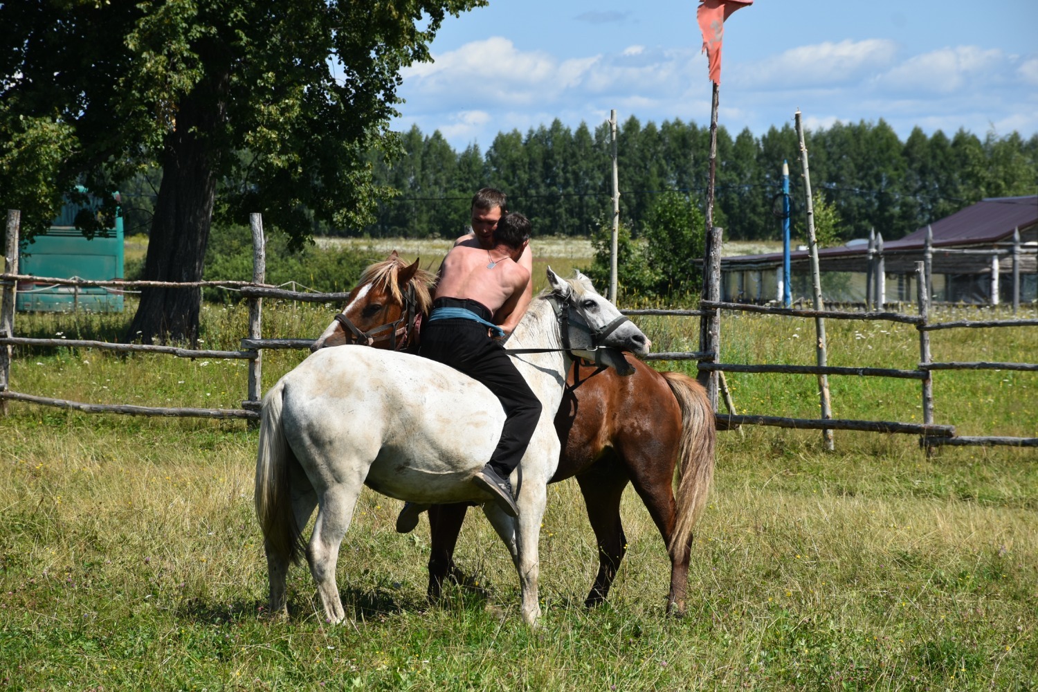 Лошади - грациозные, величественные и умные животные! Без коня невозможно представить в старинные времена башкира или индейца. Для благодарных зрителей состоялись конные представления с элементами каскадёрского искусства. Парни соскакивали с лошадей и тут же снова вскакивали в седло, на скаку стреляли из лука точно в цель, словно их героические предки, прозванные французами за храбрость и меткость северными амурами. Женщины с восторгом аплодировали смелым наездникам, встав с трибун!
