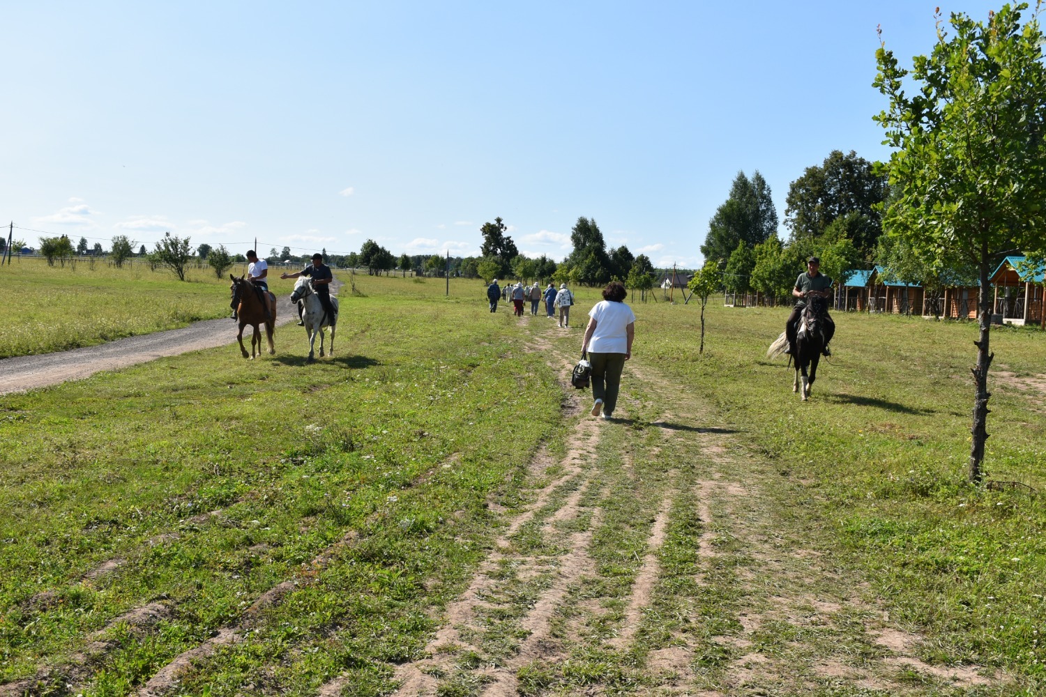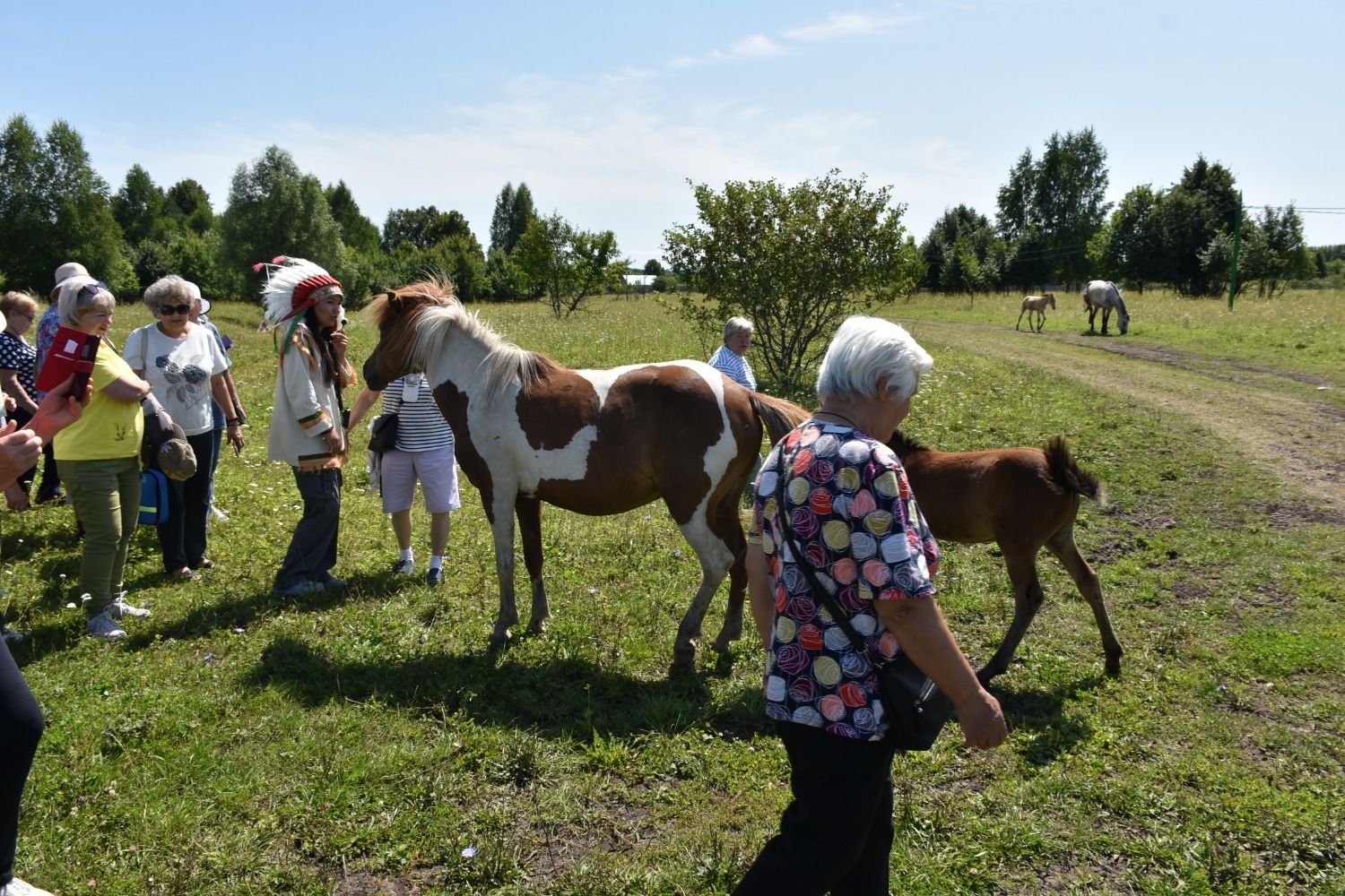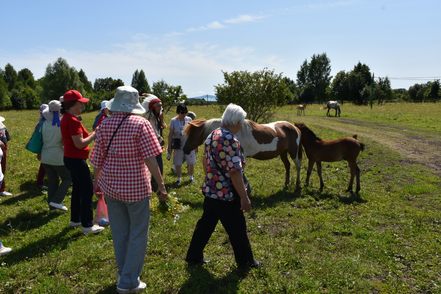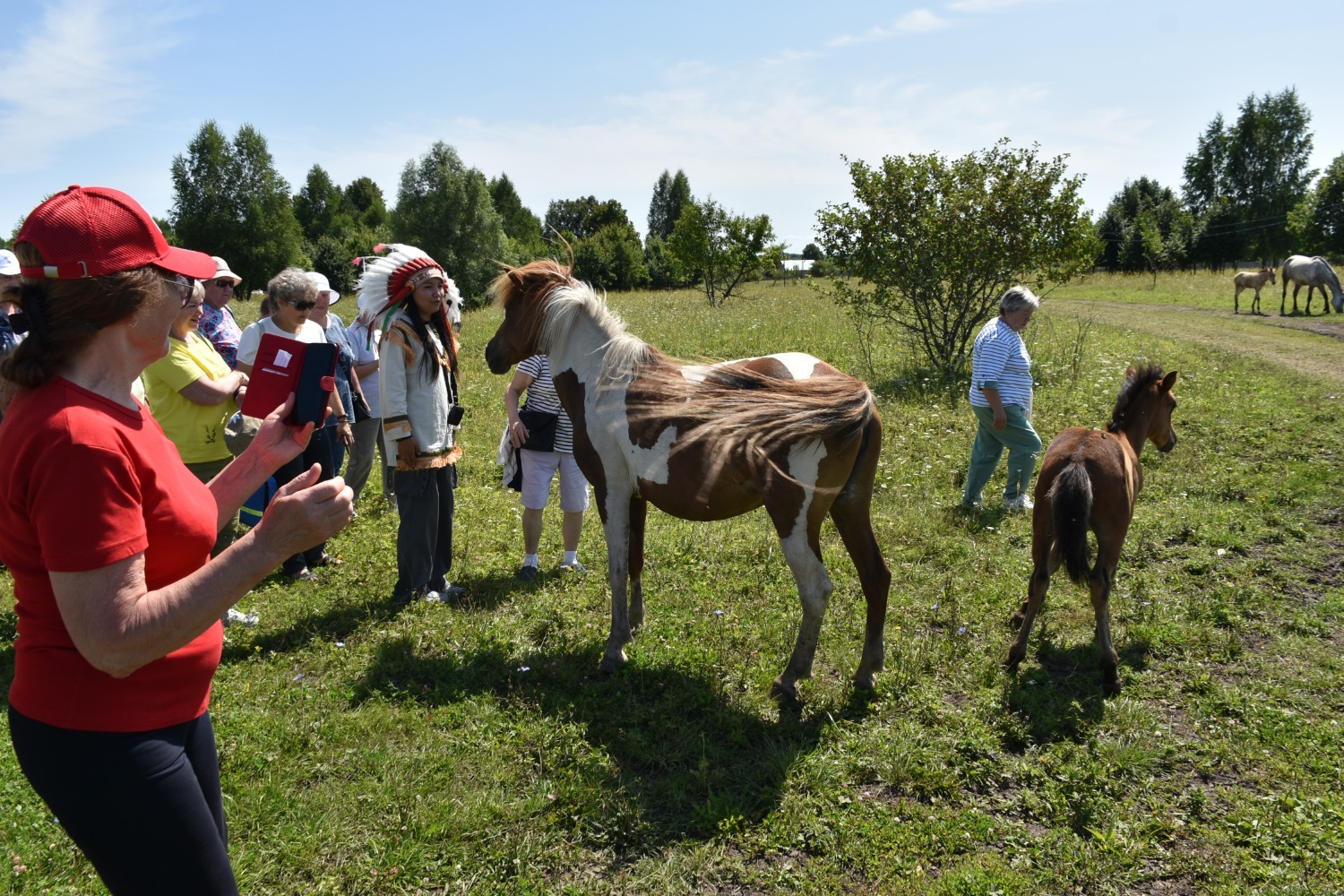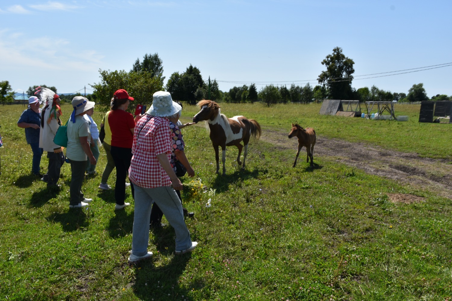 Приключения продолжались. Посетив своеобразный птичий базар с фазанами и прочей редкой птицей, наши путешественницы заглянули на кроличью ферму, умилившись ушастым пушистикам. Гид-«индианка» Камилла уверенно вела своих гостей. Её яркие перья на голове были чётким ориентиром для нашего «племени». По пути женщины умудрялись подкармливать морковками, загодя припасёнными дома, мирно пасущихся на лужайке жеребят и пони. То тут, то там попадались костровища с «шалашами» из сухих дров, с каменками и брёвнами-скамейками. Не сговариваясь, наши женщины запевают: «Взвейтесь кострами синие ночи…».