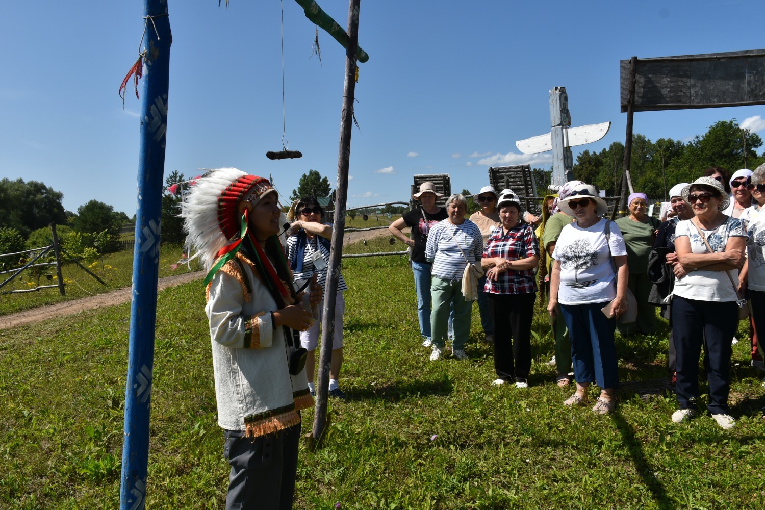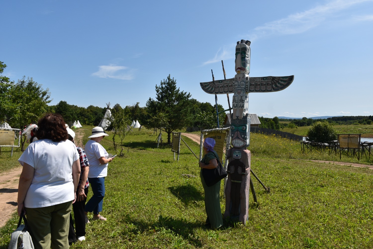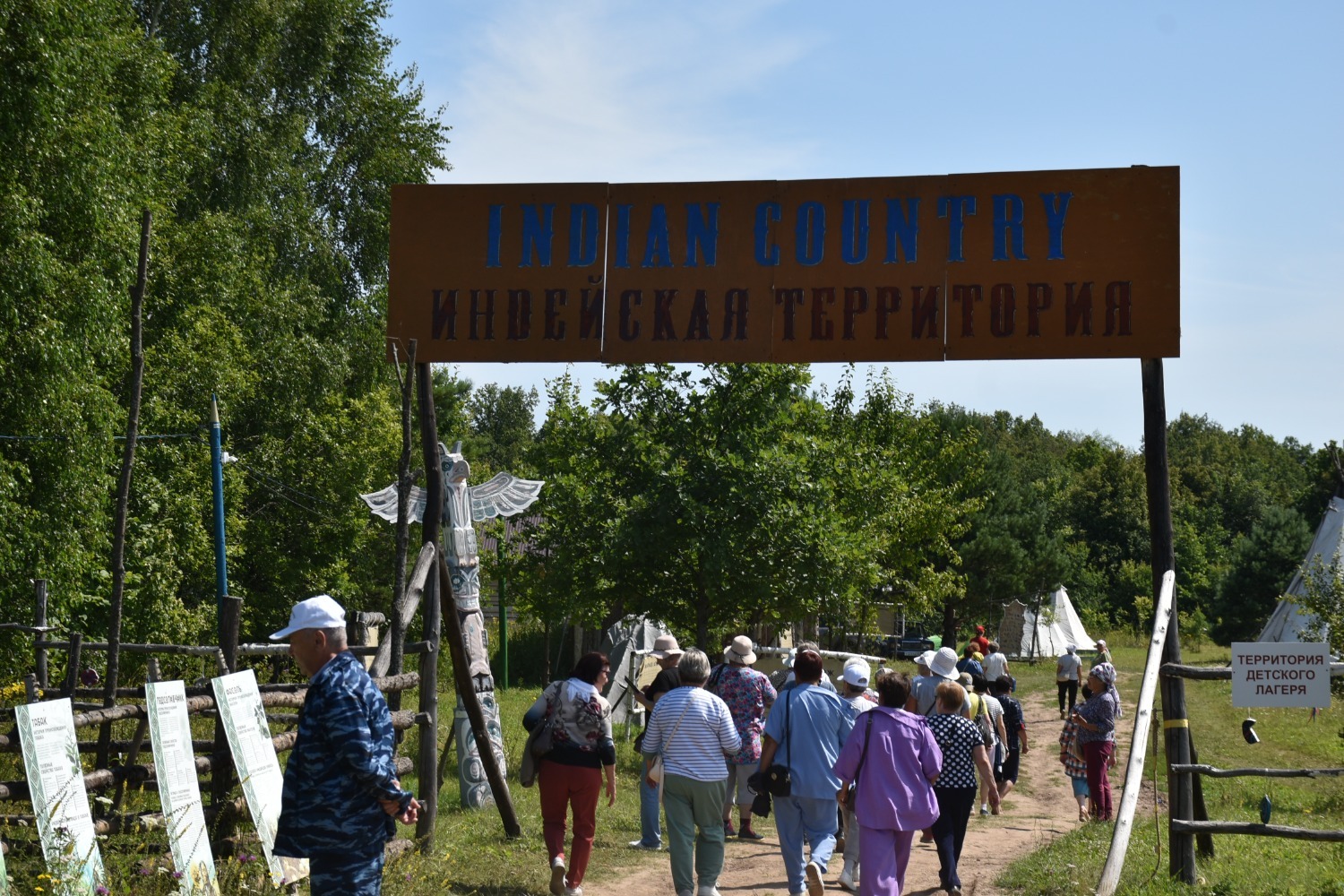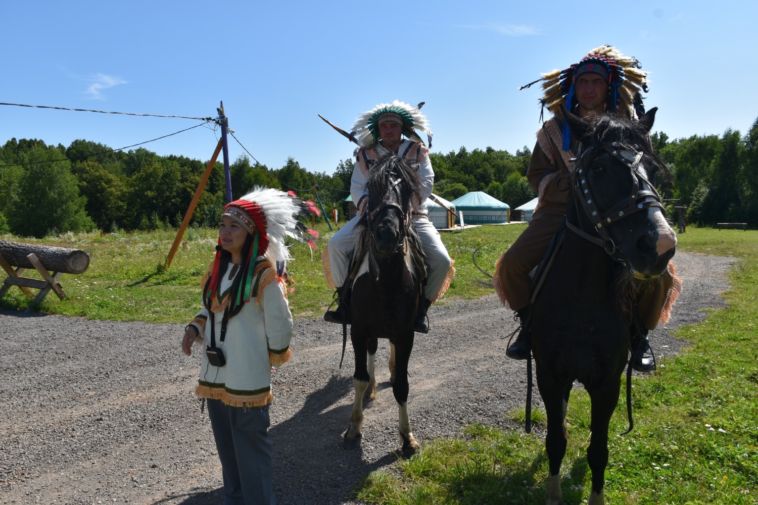 Этнопарк «Терра» встретил нас ярким солнцем, летним теплом, освежающим ветерком, но главное - гостеприимством и радушием! Ещё на подъезде к туристическому объекту нас встретили трое настоящих индейцев верхом на лошадях! Окружив наш автобус с трёх сторон, они с гиканьем сопроводили наш автобус до ворот «Башкирско-индейской территории».