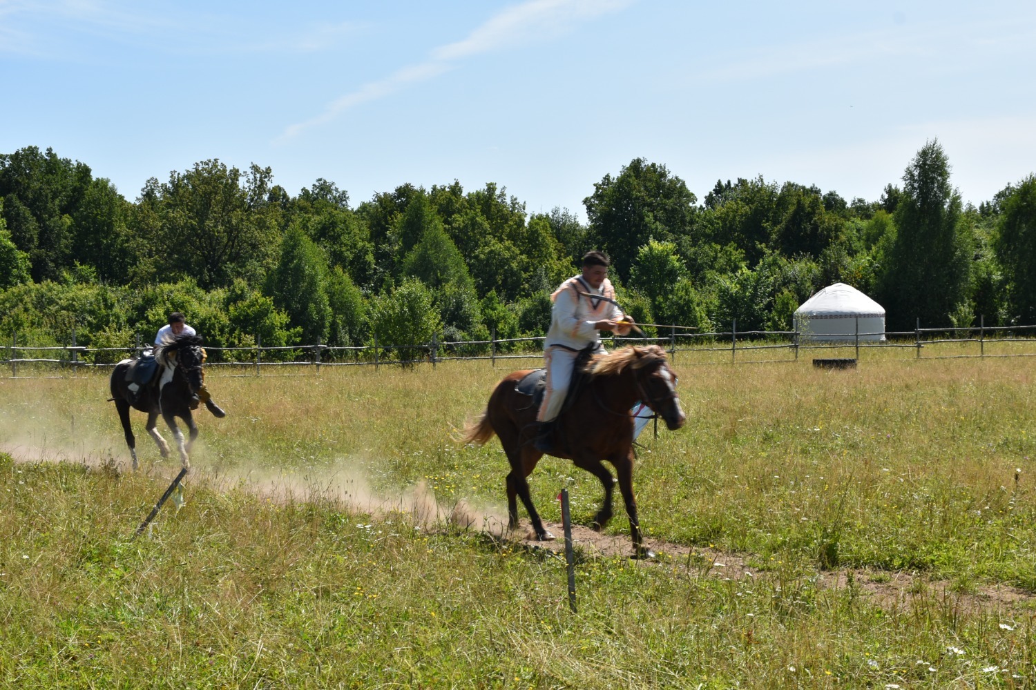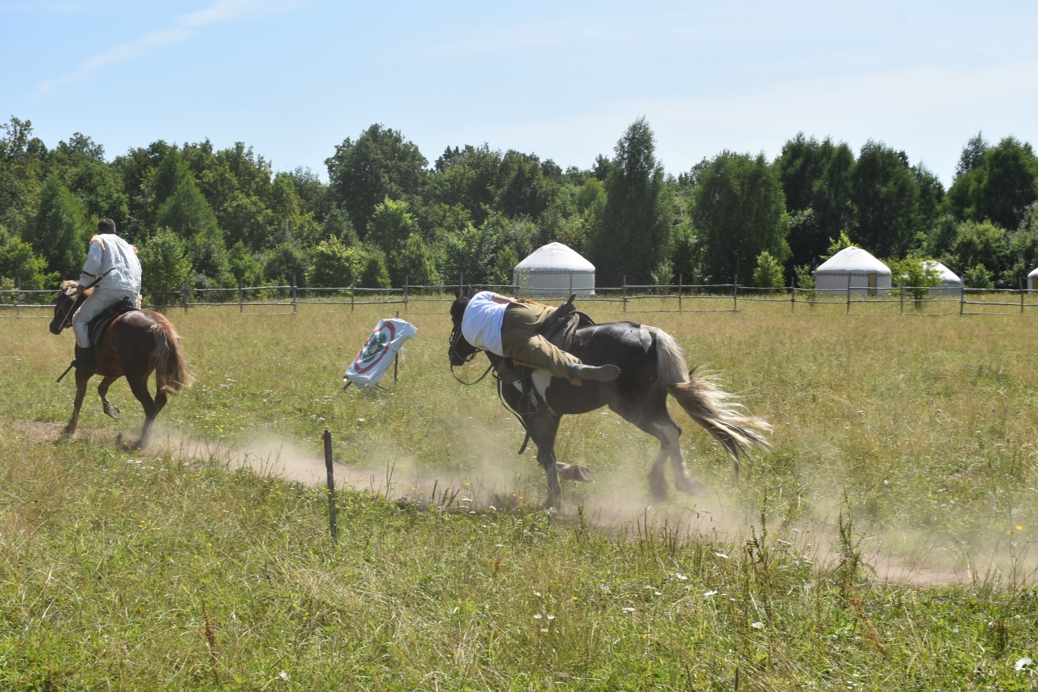 Не успели зрители перевести дух, как на другой арене начались соревнования всадников под названием «Аударыш» - это древняя тюркская игра, в том числе башкирская, состязание на конях, в которой наездник должен либо стащить соперника с лошади, либо вынудить спрыгнуть. У каждого из четырёх конников была своя группа болельщиков. Жительницы Мелеуза и Зиргана азартно скандировали имена понравившихся участников!