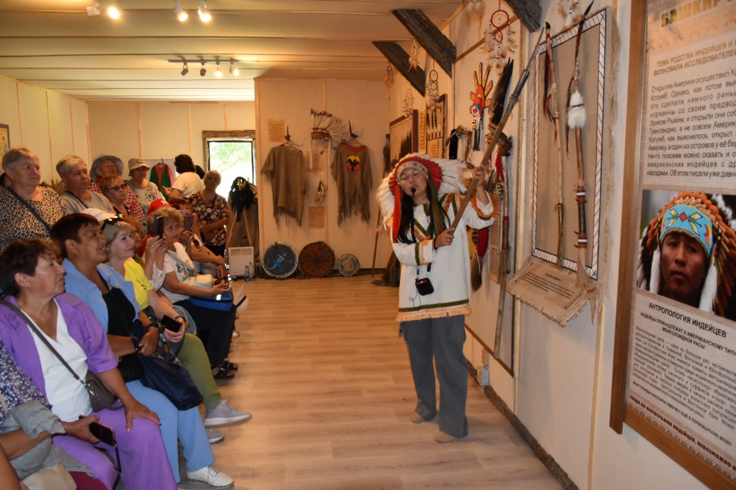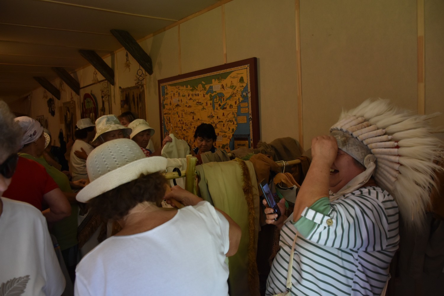 Гвоздём программы было, конечно же, переодевание в индейские наряды. Даже надев головной убор с перьями, женщин было не узнать! Будто это не приехавшая из Мелеузовского района мадам, а настоящая амазонка-воительница из жарких прерий Дикого Запада! А вот мужчина солидного вида и почтенного возраста вмиг преобразился в мудрого вождя могикан! Фотографий сделали море!