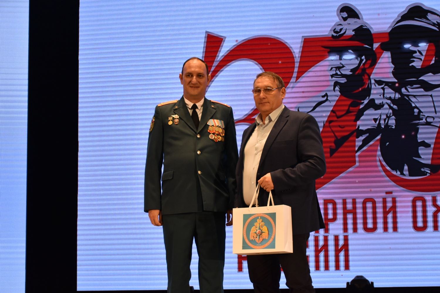 Затем состоялась церемония вручения наград. Среди награждённых действующие сотрудники МЧС и ГК РБ по ЧС, добровольцы пожарных дружин, ветераны службы и вдовы погибших огнеборцев, руководители и представители предприятий, организаций и учреждений, в том числе генеральный директор АО «Мелеузовские минеральные удобрения» Роман Дьяк и директор школы №4 им. Героя Советского Союза С. Н. Гуреева Юрий Зайцев. Заслуженные поощрения получили и школьники, победившие в профильных конкурсах.