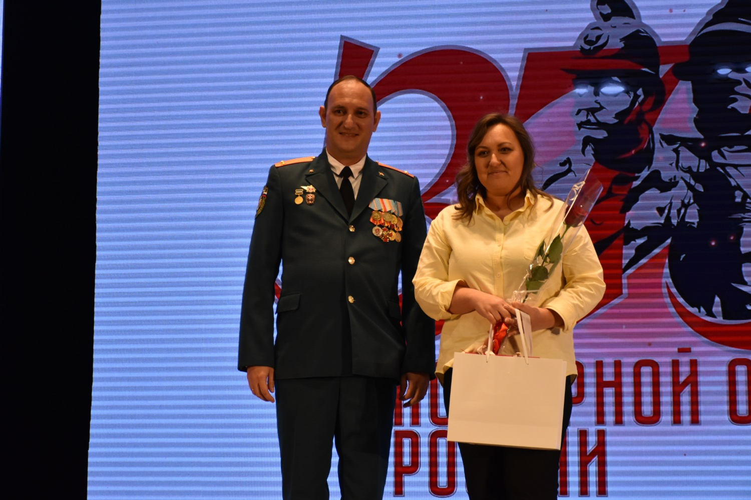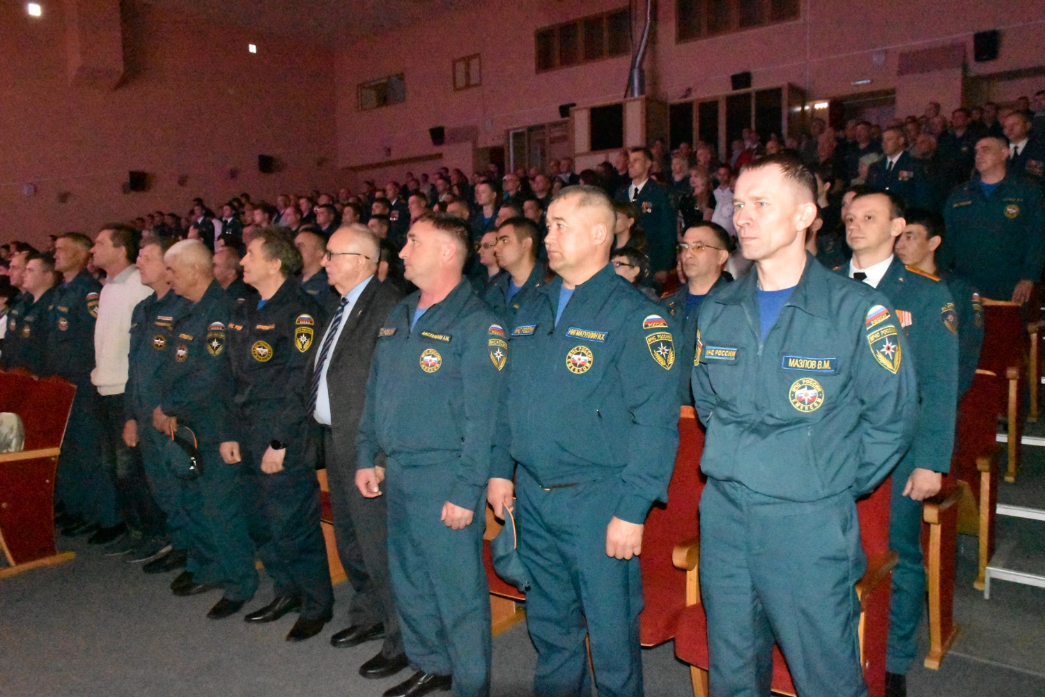 Большой зал МДК был полон. В едином порыве все встали, чтобы почтить минутой молчания память пожарных и спасателей, погибших в ходе стихийных бедствий в борьбе за человеческие жизни и скончавшихся по другим причинам, ушедших в мир иной ветеранов службы. Новая категория - павшие смертью храбрых на полях сражений бойцы СВО из числа сотрудников МЧС, а также те, кто умер, спасая людей от последствий вражеских атак бандеровцев. Тем более нынешняя встреча пришлась на последнюю пятницу апреля, выпавшую в этом году на 24 апреля, в которую ежегодно отмечается День памяти сотрудников МЧС России, погибших при исполнении служебных обязанностей.